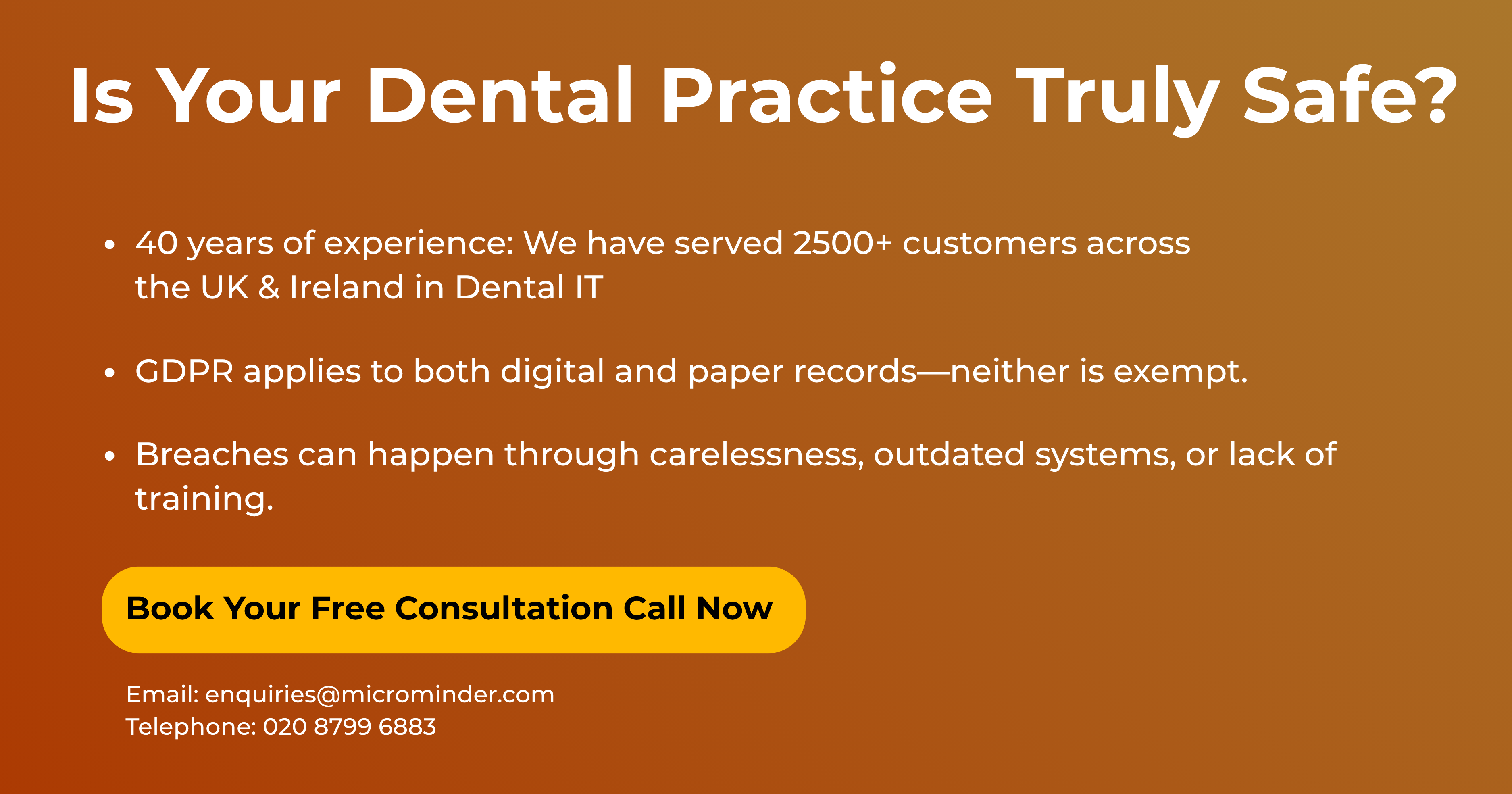 GDPR compliance isn’t just about policies and paperwork, it’s about having the right infrastructure in place. A trusted IT provider such as Microminder can help ensure your systems are secure, your data is backed up, and your communications are encrypted. We offer peace of mind with tools to help you stay compliant and offer managed IT support. Investing in expert IT services means you’re not just meeting legal requirements; you’re building a resilient and patient-centred practice.